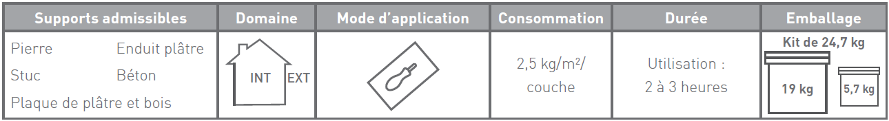 Sa formulation minérale assure une excellente adhérence, une grande durabilité et un rendu esthétique authentique. Ce produit permet de créer des finitions élégantes et résistantes, tout en respectant les caractéristiques techniques des supports.