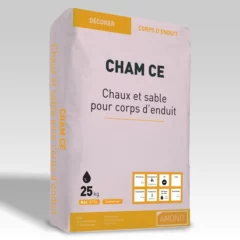 Le CHAM CE est un mortier de chaux hydraulique naturelle et de sable destiné à la réalisation de corps d’enduit hydrauliques, conformément au NF DTU 26.1.