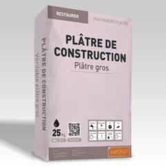 Le PLÂTRE DE CONSTRUCTION, aussi appelé plâtre gros, est un plâtre manuel traditionnel utilisé pour les travaux de dégrossissage, de hourdage de maçonnerie et de remplissage de décor.